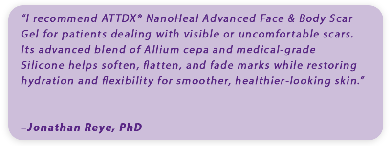 ATTDX® harnesses Nano-Liposome Delivery Technology to encapsulate each active ingredient into ultra-fine particles, ensuring they reach deep within scar tissue where healing is needed most.